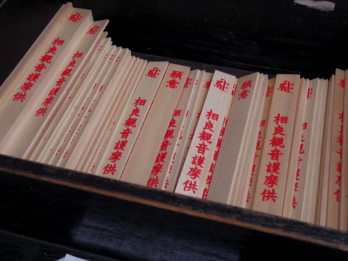 | 相良寺の護摩木。 |