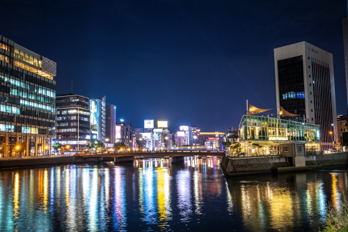 | 赤煉瓦文化館向かいから中洲方面の夜景を見る。 |