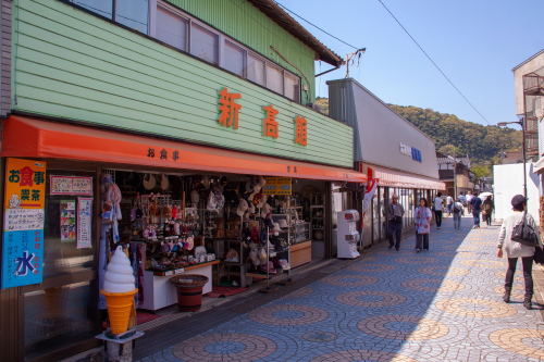 | 秋芳洞に続く商店街。 |