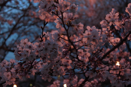 | ライトアップされた桜の花。 |