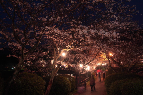 | 朝倉市甘木地区にある甘木公園は、朝倉市民の憩いの場として多くの市民が訪れる公園です。公園内には約4000本の桜の木があり、3月下旬〜4月上旬にはたくさんの人々が花見に訪れる、福岡県下でも桜の名所として有名です。また夜間はライトアップされます。 |