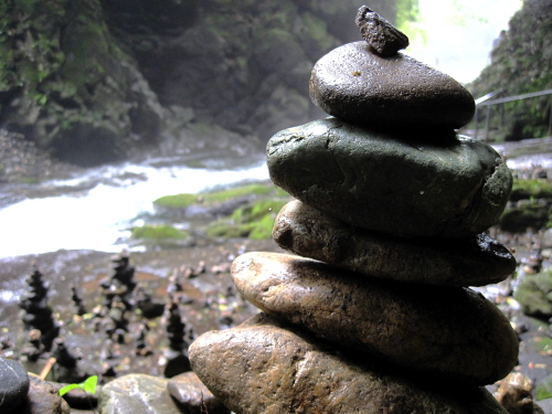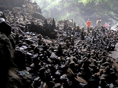 | 石を積まれてある塔があたり一面敷き詰められています。 |