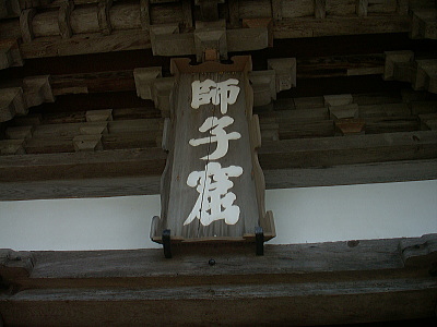 | 仏殿に掲げられている『師子窟』の銘版。 |