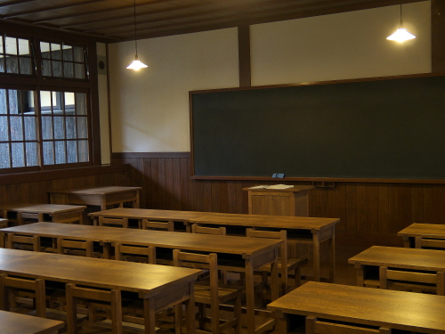 | 学校の教室を再現したスペース。 |