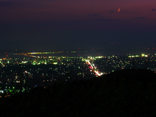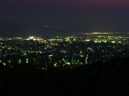 | 長崎自動車道・大村インターチェンジから車で5分ほどにある大村ハイテクパーク内にある施設・アルカディア大村からは、大村市街の夜景を一望できます。琴平岳展望台と比べると標高差の問題でやや迫力に欠けますが、その分展望スポットの雰囲気が非常によく、海上空港である長崎空港から離発着する飛行機と大村の夜景をゆっくり観賞できます。 ※撮影にあたり、思ひ出日記U様の投稿を元に訪問しました。 |