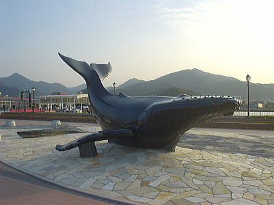 | 有川港にあるクジラの石造。昔は捕鯨の港でもあったそうです。 |