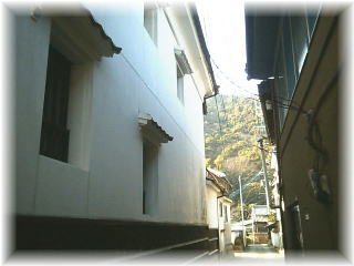 | トンバイ塀のある裏通りへの行道。軽自動車1台スレスレで通れるこの道幅は地元の方は普通車で通行しているようです。 |