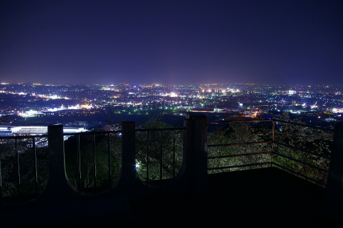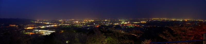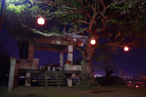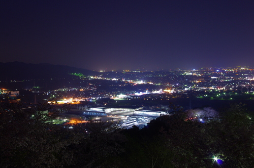 | 九州の交通の要所・鳥栖市の中心部から西にある小高い山の公園で、春になると桜が咲き、桜の名所として花見客で賑わう公園です。駐車場からそこそこ勾配がある階段を上がっていくと展望台が設置されており、鳥栖市と遠景に久留米市の夜景を観賞できます。 |