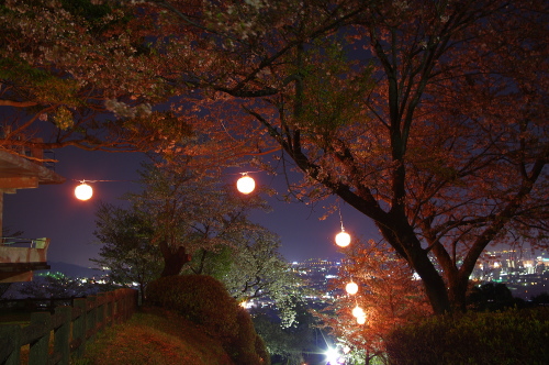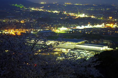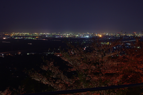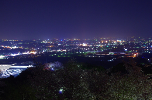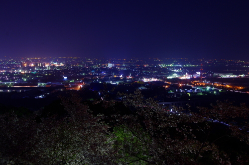 | 夜桜と鳥栖市の夜景を望む。 |