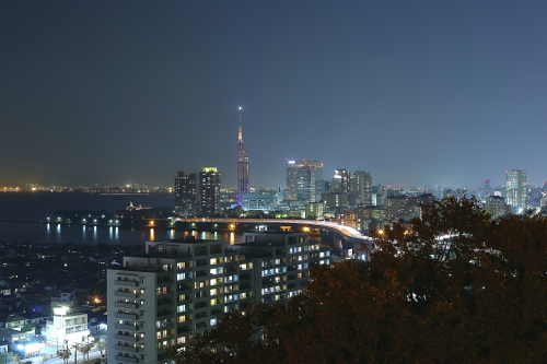 | 福岡タワーを中心とした夜景と展望スポットの雰囲気。 |