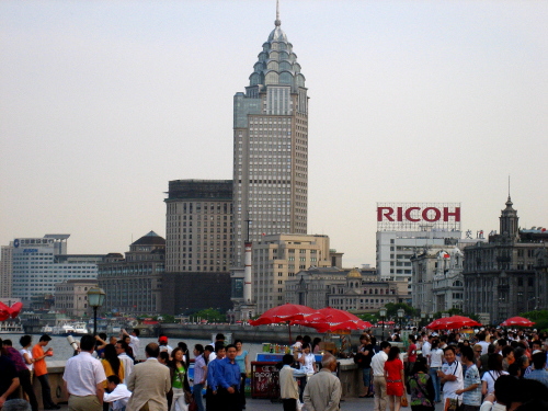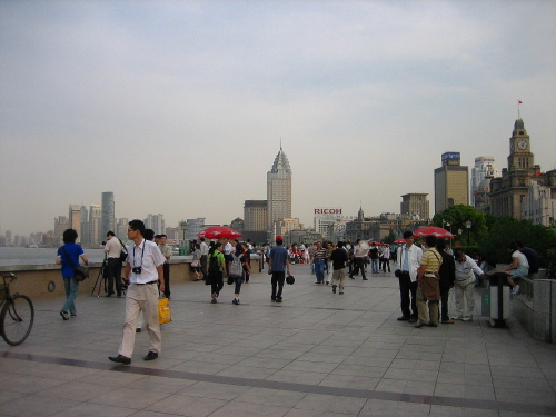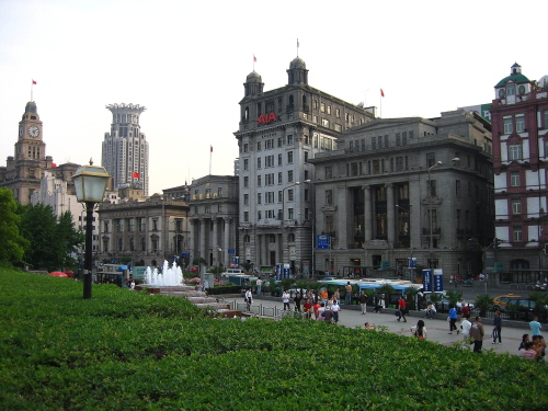 | 外灘(ワイタン)は中山東一路から中山東二路までの黄浦江西岸沿いのエリアで上海随一の観光エリアです。この一帯は昔、租界地区であったことから、「外国人の河岸」(外灘)が名前の由来らしいです。租界時代の西洋建築が立ち並び、夜にはライトアップされます。 |