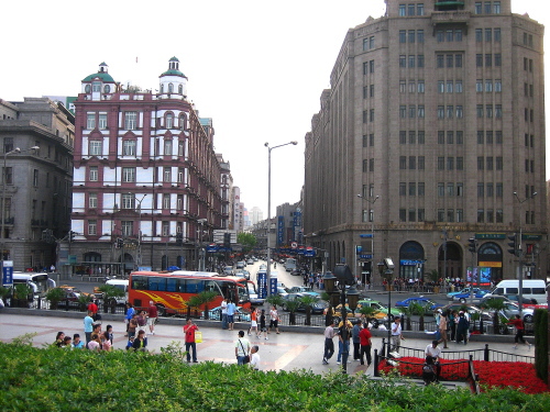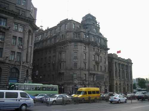 | 外灘から福州路を望む。右の建物は上海税関。 |