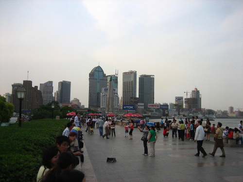 | 外灘から遠くに北側の高層ビル群を望む。 |