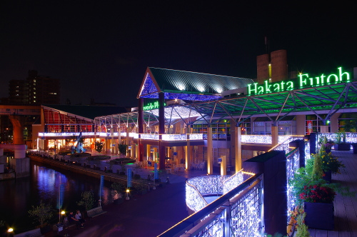 | イルミネーションで飾られたベイサイドプレイス博多埠頭。 |