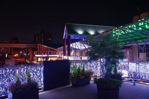 | ベイサイドプレイス博多埠頭では、2011年7月30日から8月31日の間、イルミネーションの点灯が行われています。ホワイトとブルーの電球が随所に飾られて、美しいイルミネーションを演出してくれています。 |