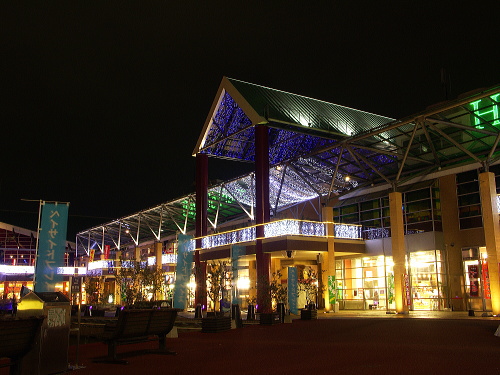 | LEDで電飾されたベイサイドプレイス博多埠頭。 |