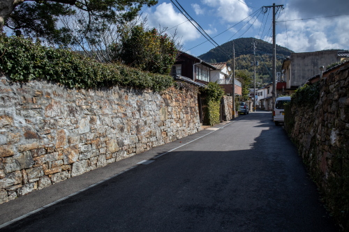 対馬市厳原町は江戸時代まで対馬藩の城下町であり、厳原の町にある武家屋敷通りにはあちらこちら石垣が残されており、城下町であった面影を残しています。住宅地でもある為、あまり住民の迷惑にならぬようにしないといけません。武家屋敷通りには、対馬領主宗氏の20代当主である「宗義智」の像や半井桃水館等があります。