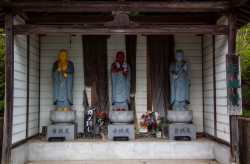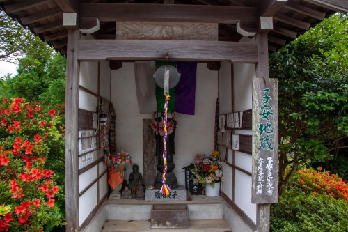 呑山観音寺に向かう参道沿いにある水子の寺・文殊院は、水子地蔵を供養する寺ですが、祈願の御地蔵様・首なし地蔵や勝軍地蔵・招き地蔵などもあり、参拝に訪れる事が出来る寺院です。本堂である大悲殿には御本尊である地蔵菩薩が安置されています。