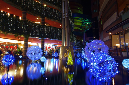 | キャナルシティ博多は、1996年4月20日にオープンした、ショッピングセンター、映画館、劇場、アミューズメント施設、ホテル(2軒)、ショールーム、オフィス等が集積した複合施設です。毎年、クリスマスの時期になるとクリスマスイルミネーションが開催され、訪れる人々を楽しませています。 期間:2011年11月12日〜12月25日 |
