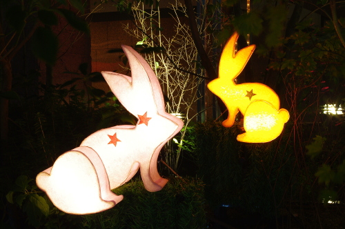 | ムーンウォークにある森の小道にあるウサギ。 |