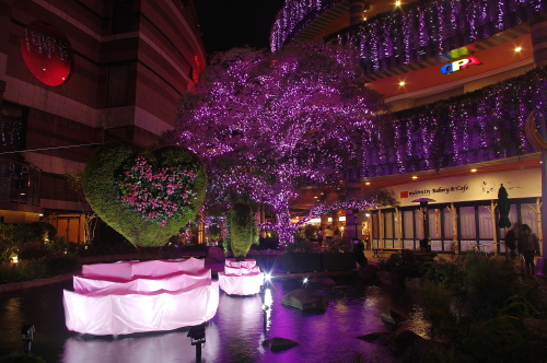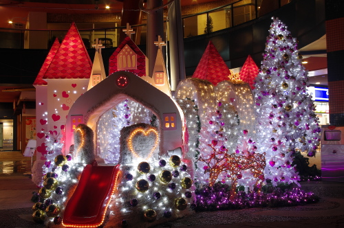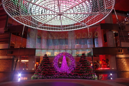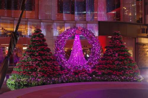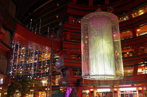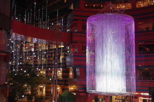 | キャナルシティ博多は、1996年4月20日にオープンした、ショッピングセンター、映画館、劇場、アミューズメント施設、ホテル、ショールーム、オフィス等が集積した複合施設です。毎年、クリスマスの時期になるとクリスマスイルミネーションが開催され、訪れる人々を楽しませています。今年2013年のテーマは「愛でつながるクリスマス」で、新しいクリスマスインスタレーション「願いのクリスタルツリー」が飾られています。この「願いのクリスタルツリー」は約5万個のフルカラーLEDチップを使用した、高さ約9m・幅約6mの立体ディスプレイでスマートフォンから立体的に動かす事が出来るものです。 点灯期間:2013年11月16日〜12月25日 点灯時間:17:00〜24:00 |