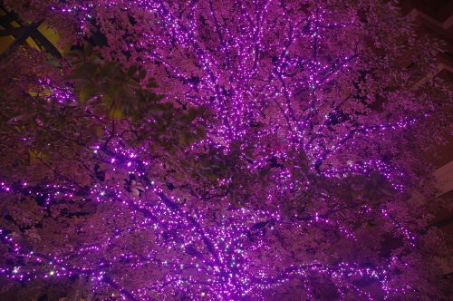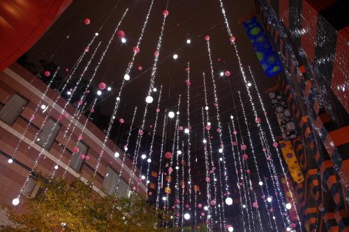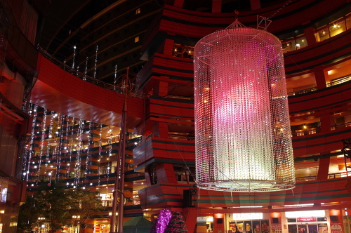 | サンプラザステージから「願いのクリスタルツリー」を見上げる。 |