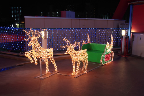 | 3階の観覧車乗り場にあるトナカイのイルミネーション。 |