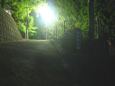 | 知見寺公園の入り口。夜間は街灯がついているので懐中電灯 は不要です。 |