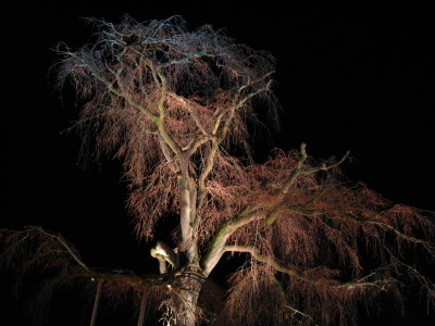 | ライトアップされた円山公園の桜。 |