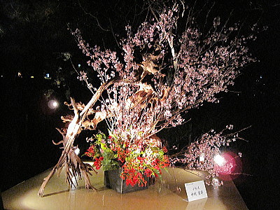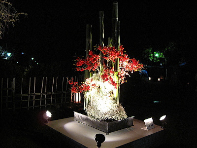 | 円山公園で開催されているいけばなのライトアップ。 |