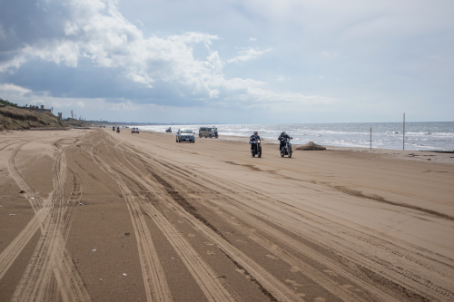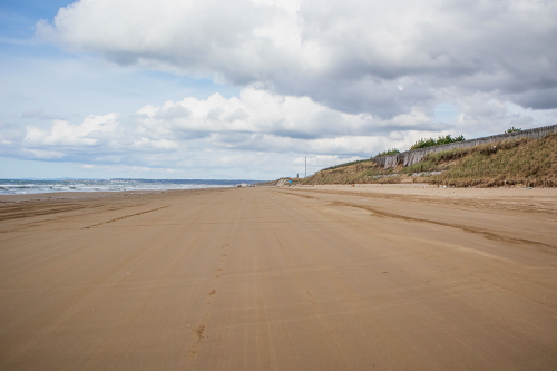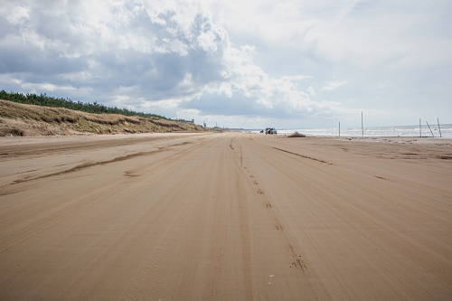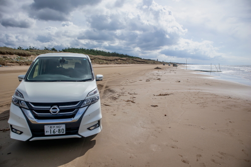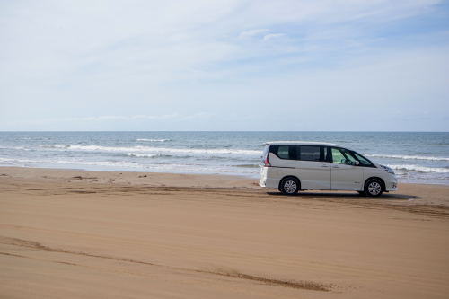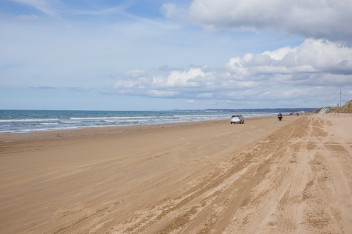 | 千里浜なぎさドライブウェイは日本で唯一、一般の自動車やバスでも海岸線の砂浜の波打ち際を走る事ができる道路で、石川県羽咋郡宝達志水町から同県羽咋市に至る、砂浜の延長約8キロメートルの観光道路です。「なんでも走れる砂浜」として沢山の車が砂浜の道路を走り、果てしなく広がる日本海を眺める事が出来ます。千里浜の砂は砂の粒子が細かく、適度に湿っており締め固まっている為、大型バスも通行できるようになっています。 通行料:無料 |