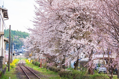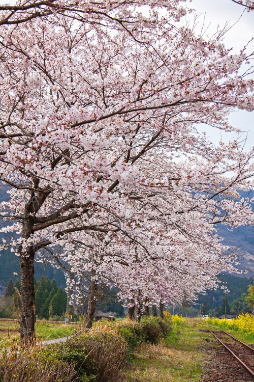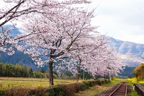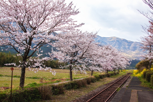 | 南阿蘇を走る南阿蘇鉄道の駅・長陽駅は、熊本地震の影響で現在では営業停止になっていますが、駅にはカフェが営業されており駅の線路には桜の木が植樹されていて、開化の時期には桜の花を楽しむ事が出来る花見スポットになっています。 |