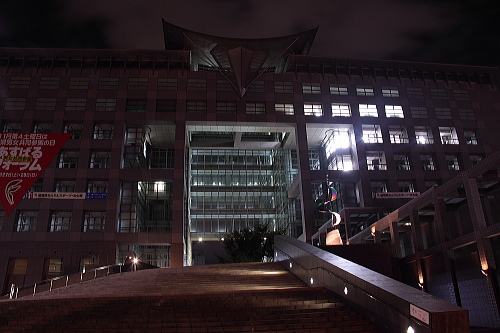 | 春日市にあるクローバープラザは、平成8年に10月に完成した地上8階建て・高さ54mの福岡県の複合施設で、多目的ホール・各研修室・OAルーム・フィットネスルーム・宿泊室などさまざまなタイプがあり、研修会や講演会・音楽会など幅広く利用されています。このクローバープラザからは、博多区雑餉隈と春日市の夜景を観賞できます。夜景の視界は広くはないですが、県の施設とあって安全性は高く、夜景を観賞できますが、いろんな施設が入っているので静かに夜景を観賞するスポットです。建物の造りの関係上、最上階ではなく6階の東西のセンターを結ぶ通路がベストポイントです。 |