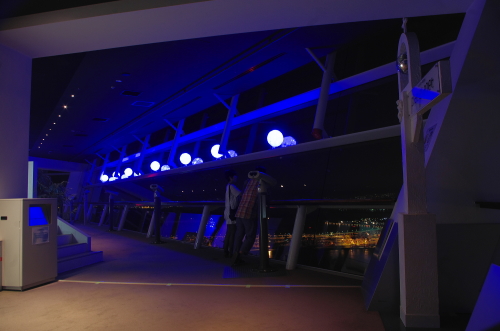 | 大阪港に浮かぶ人工島・南港ポートタウンにある大阪府咲洲庁舎展望台は、地上高252mと西日本一高い展望台で、シースルーエレベーターで1階から一気に52階で上り、53階からは長さ42mのロングエスカレーターに乗って展望台に上りきると、360度の視界で大阪湾沿岸の夜景を観賞できます。展望台は程よい照明で、カップルなどで使用できるボックスシートも設置されていて雰囲気も優れています。 |