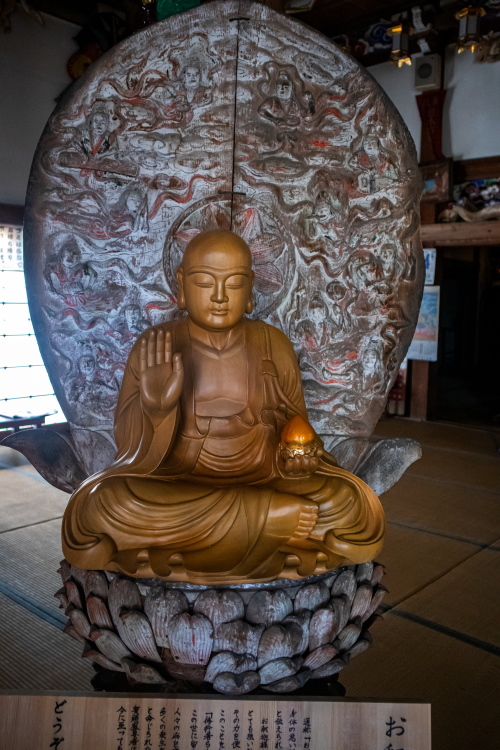 | 大寶寺奥の院に安置されている弘法大師坐像。 |