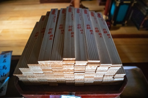 | 大寶寺不動堂にある護摩木。 |