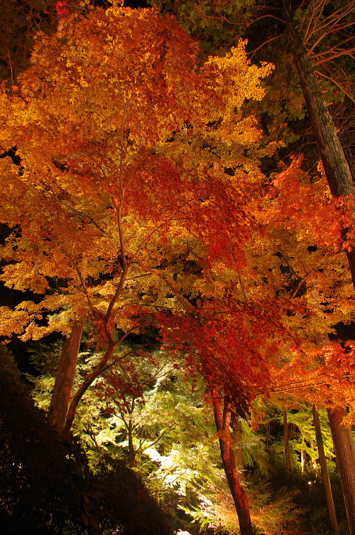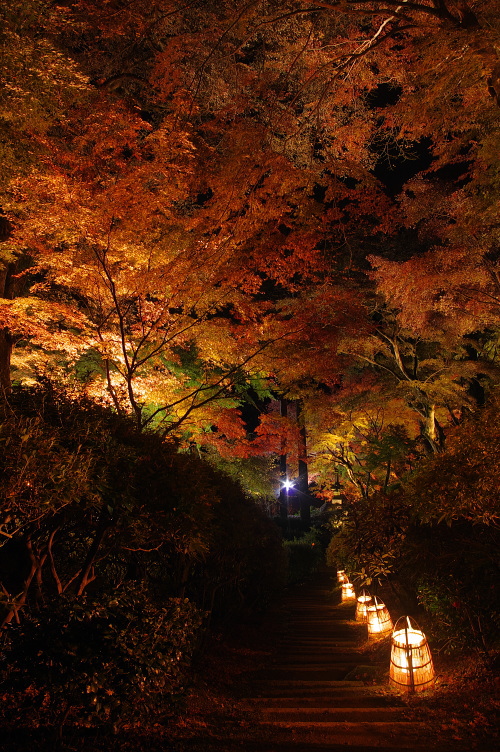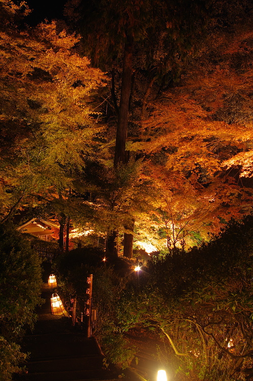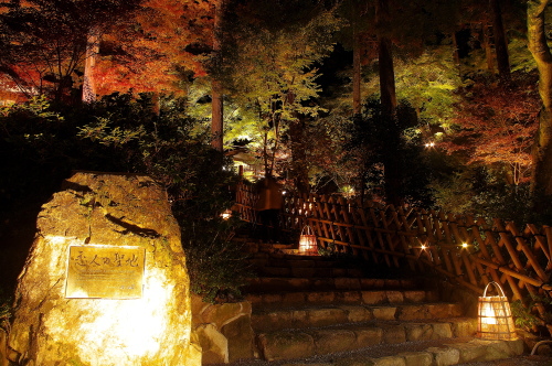 | 佐賀県基山町にある大興善寺は、別名「つつじ寺」とも呼ばれ、つつじの花で有名な寺院です。つつじの他に紅葉でも有名な寺院で、11月下旬の紅葉の見頃になった時期には、本堂周辺の他に大興善寺契園(ちぎりえん)でもライトアップされます。この大興善寺契園は、全国で115番目の恋人の聖地に認定されています。 |