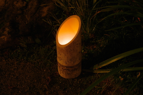 | 大興善寺契園・日本庭園にある竹灯籠。 |