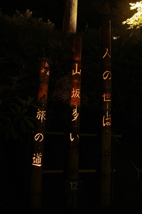 | 竹灯篭。「人の世は 山坂多い 旅の道」 |