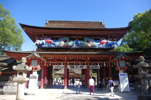 | 福岡県太宰府市にある太宰府天満宮は、北野天満宮・防府天満宮と共に三天神の一つに数えられ、また菅原道真公を祀る全国12000社の総本宮を称され、学問の神様として受験生などの参拝の他、観光客でにぎわう天満宮です。1871年から1947年までは、「宮」号が皇族を祭神とする神社でしか使用できなくなったために、「太宰府神社」という名称でした。正月三ヶ日の参拝客は全国でも有数であり、受験者の合格祈願で賑わいます。 |