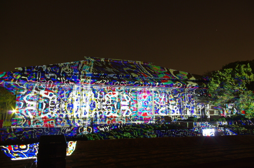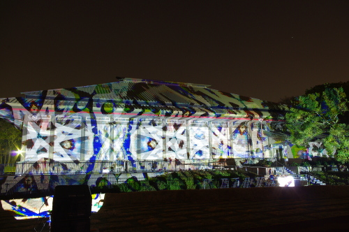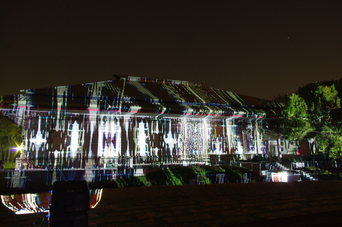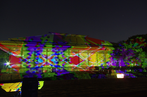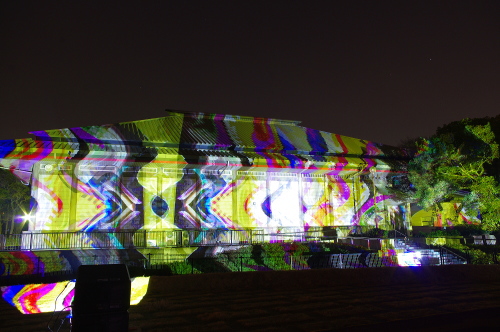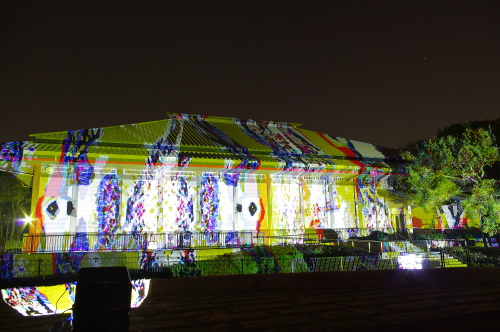 | 鴻臚館跡資料館に投射される様々な模様。 |