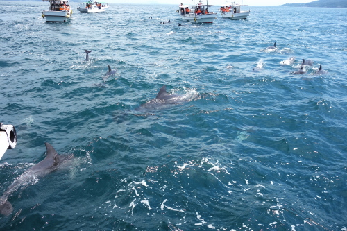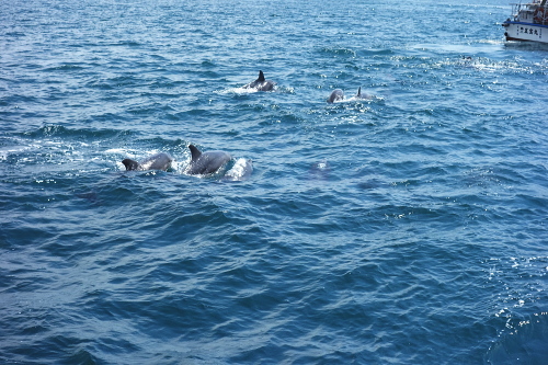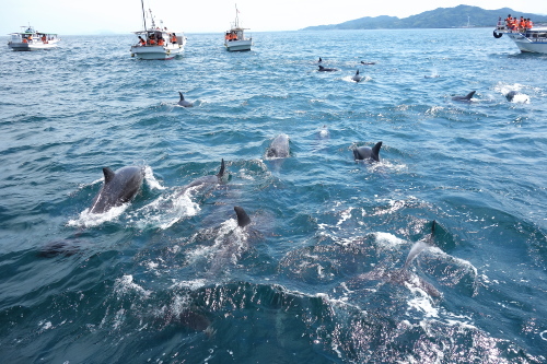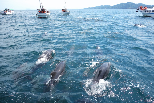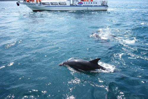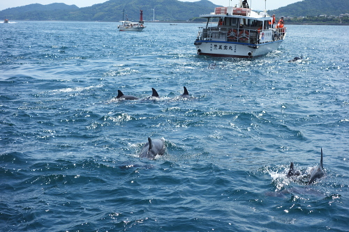 | 天草沖にはイルカが生息しており、船上からイルカの大軍を見る事が出来るものです。船は天草市の五和港から出港し、沖合まで約10分の場所にある赤い灯台が目印になっており、時期によっては親子のイルカを見る事も出来ます。このイルカウォッチングは数社行っており、会社によって船の大きさが異なります。 |