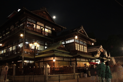 | 日本最古の温泉といわれる道後温泉の中心にあり、道後温泉のシンボル的建築物である道後温泉本館は別名「ぼっちゃん湯」とも呼ばれ、夏目漱石の小説にも描かれた温泉でもあります。本館は1894年に落成した建築物で重要文化財に指定されています。現在でも共同湯としてたくさんの観光客が利用しています。 |