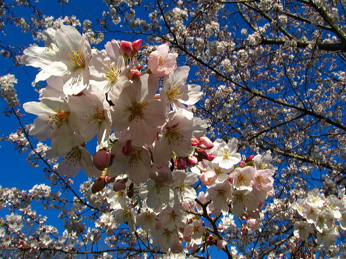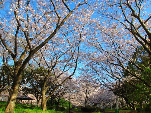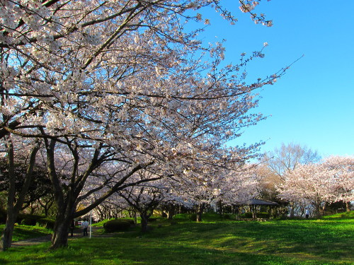 | 道伯山は、北九州市の副都心・八幡西区黒崎の北側にある小高い山で、標高62.5mと世界で2番目に小さい火山だそうです。1604年には黒崎城という城が、この山に築城されたのですが、現在ではその面影だけが残されています。春になると桜の花が一帯に咲き、地元の人でもあまり知られていない、隠れた桜の名所になっています。 |