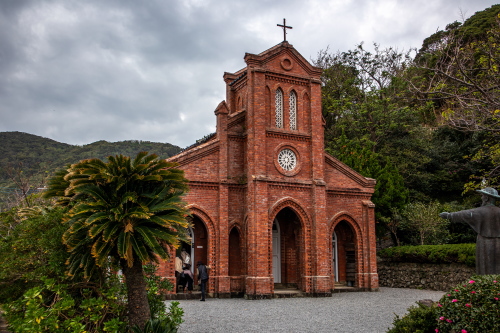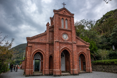 | 長崎県五島市の北部にあるカトリック堂崎天主堂は、下五島では一番歴史が古い教会で赤煉瓦造の建物は長崎県指定有形文化財に指定されています。1873年の禁教令が解かれた後に、五島キリシタン復興の任を帯びてフランス人宣教師フレノーとマルマン両神父が五島を訪れ布教にあたり、1879年にマルマン神父によって五島における最初の木造の天主堂が建てられましたが、その後着任したペルー神父によって1908年に赤煉瓦造りの教会堂が完成し現在に至ります。 建築の際には資材の一部がイタリアから運ばれ、内部は木造で色ガラス窓、コーモリ天井などの教会堂建築となっています。教会内部は弾圧や教会の歴史・資料を展示する資料館として一般公開されています。 駐車場:有 入館料:大人300(250)円・中高生150(100)円・ 小学生100(50)円 ※( )内は20名以上の団体料金 |
