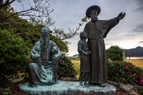| フランス人宣教師マルマンとペルー両神父の像。 |