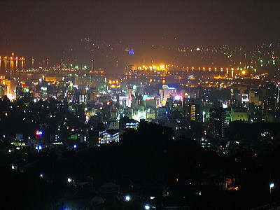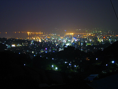 佐世保市の東・西海国立公園で最高峰を誇る烏帽子岳を登る道沿いの所々から佐世保市の市街地を東から見ることが出来ます。この付近一帯は駐車場はありません。駐停車禁止ではありませんが、車の通行はそれなりにあるのでなかなかゆっくり車を止めて眺めることは出来ませんが、車の通行が少ない時間帯であれば車内から観賞できます。