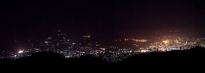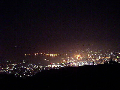 | 展望所からの佐世保市の夜景。弓張岳からとは違い、南北に長い佐世保の街を見ることが出来ます。 |