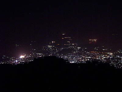 | 佐世保市中心部から東の方向の山に烏帽子岳があります。標高568mからの眺めは佐世保市の夜景を東側から見る事になります。山頂までは駐車場から歩いて約10分程度登ると着きます。周辺は暗いので懐中電灯は必須です。山頂までの道は舗装されていないので、運動靴などで行かないといけません。(登山道です) |