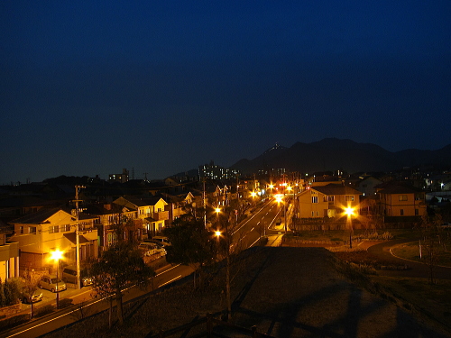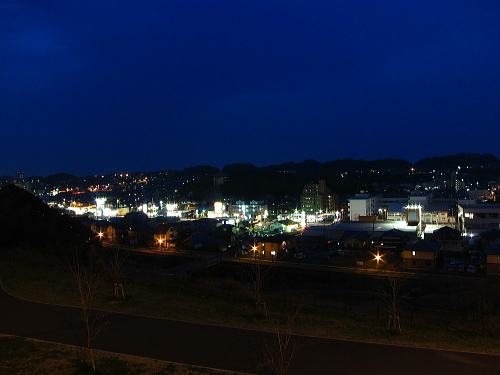 | 北九州市八幡西区の西部・永犬丸地区のやや高台の住宅地内にある公園で、木製の展望台に上がると永犬丸地区の夜景を観賞できます。夜景の規模は小規模ですが、公園内の雰囲気がよく外灯もあるので安全性は高いです。地元の方が散歩やジョギングされている憩いの公園になっています。 |